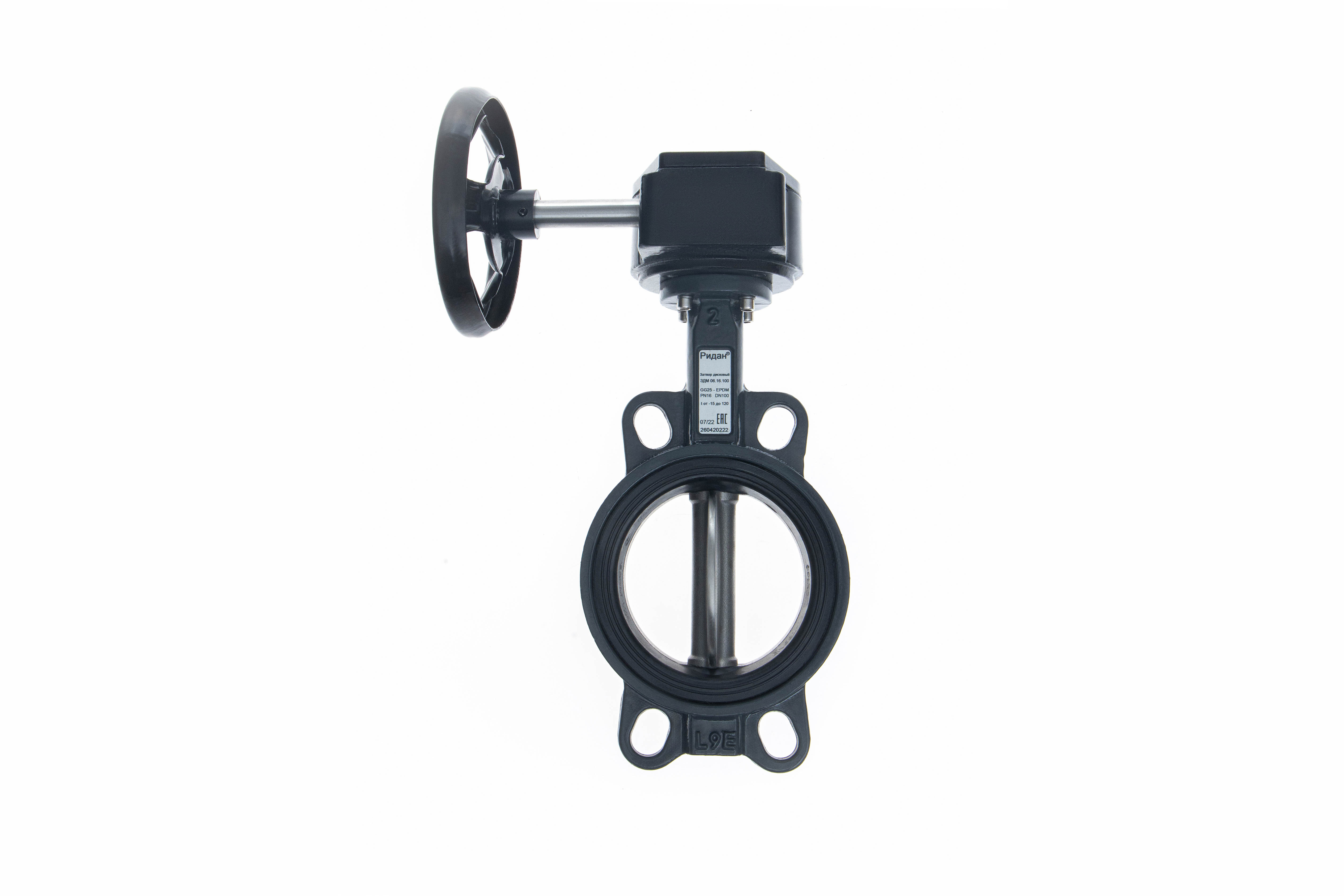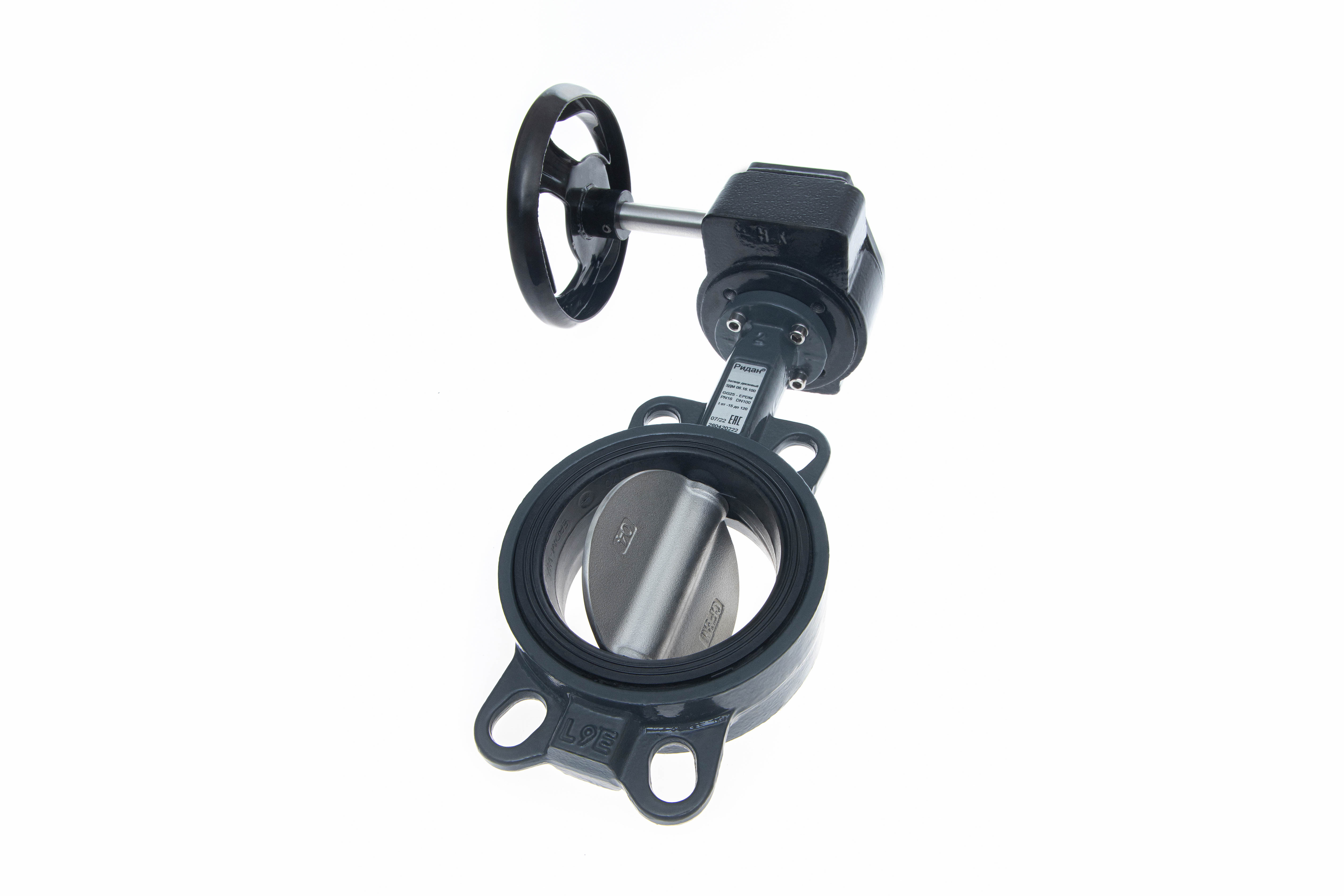 Ридан 082X4433R — Затвор дисковый поворотный ЗДМ 06.16.200, PN16, DN200, корпус GG25, диск — нержавеющая сталь AISI316, уплотнение EPDM, с ручным редукторным приводом