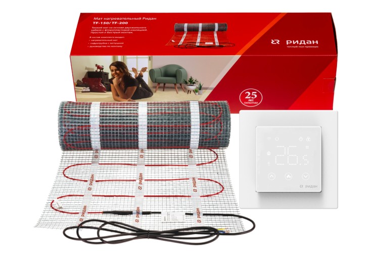Ridan 21RT1091R — Нагревательный мат Ridan TF-200 2 м² с терморегулятором Ridan Clever (белый)